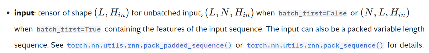 也就是说,如果给 LSTM 的输入张量是包含多组数据的,那么张量的第1维度L(序列长度),第2维度是N(分组数目),第3维度是输入维度。如果指定 batch_first=True,那么第1维度是分组数目,第2维度是序列长度,第3维度是输入维度。
